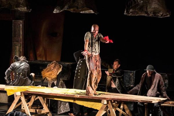 在舞台艺术上,导演技法中最引人注目的是对空间与时间的独特处理。当舞台前方的“草台班子”上进行着主要对话时,台子的下面,又或者背后、舞台旁侧的阴影中总有其他角色如同历史幽灵般游荡。他们都在情节中,在自己的故事、情绪和身体动线上,带来快速切换的视觉焦点使得观众注意力不断在主要情节与次要细节间跳跃。这种更直观的导演手法创造了一种集体宿命感,李尔王的悲剧是整个民族命运的缩影。