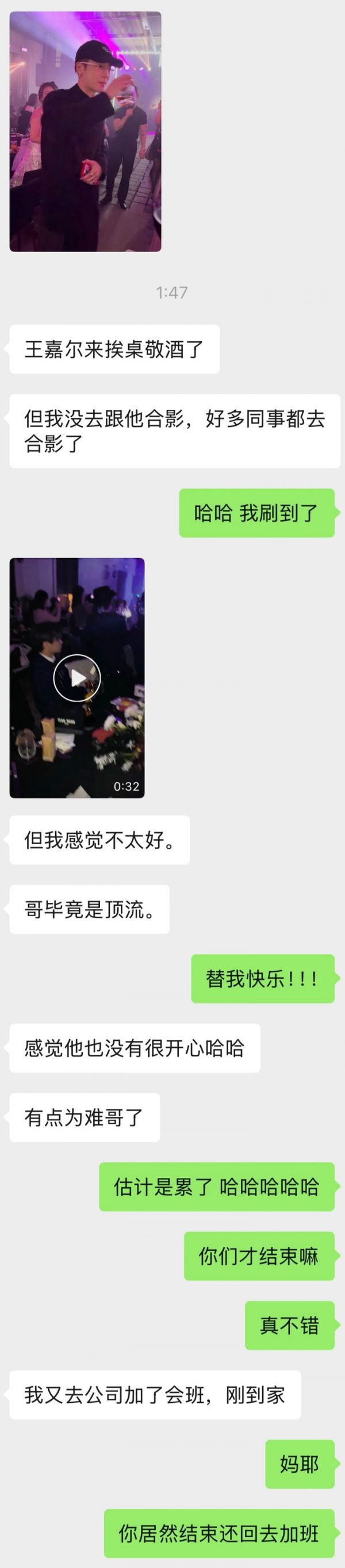 #王嘉尔[超话]# @王嘉尔 当朋友WB年会结束之后给我发的微信