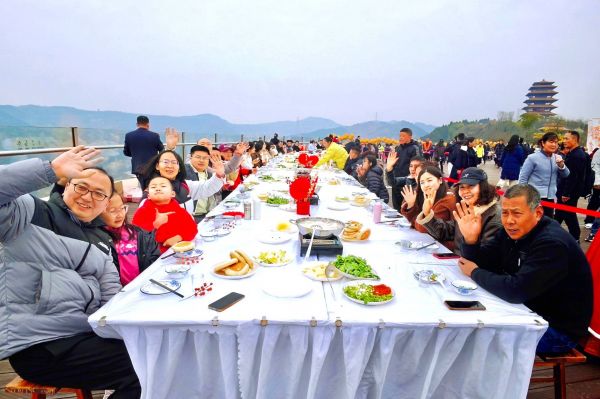 暖意融融的长龙宴,传递着新春的温情与团圆的希冀。游客们围坐共饮,在美景与美食的交融中,感受着成都东部新区传统年俗的独特魅力。(来源:成都东部新区)