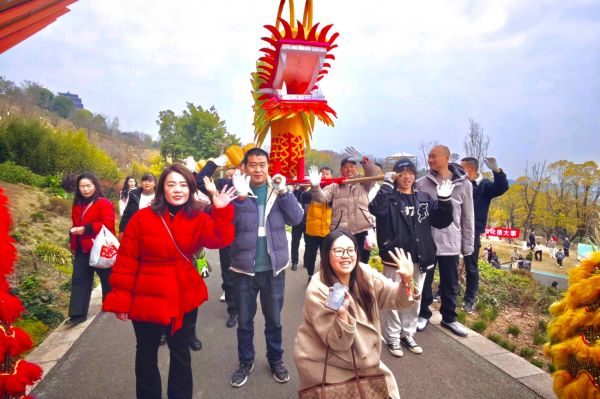“一边看风景,一边找印章,孩子玩得特别开心,感觉年味儿更浓了!”带着全家老小前来游玩的市民马先生兴奋地展示着手中的集章卡。活动现场,成都东部新区市级非物质文化遗产余门拳团队带来的高难度舞狮表演精彩纷呈,与“敲鼓祈福”等传统年俗活动交相辉映,让整个景区沉浸在喜庆祥和的节日氛围中。