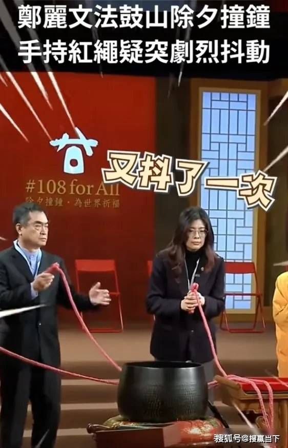 大年初一,国民党主席郑丽文在庙里主持撞钟祈福活动,直播画面中她拿起红绳敲钟时,手和身体突然连续抖动五六秒,幅度挺大,但她脸色不变,也没人搀扶,自己站稳继续完成仪式,现场没人叫医生,事后也没提身体有问题。
