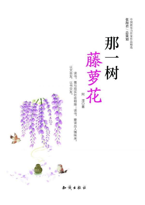 第二本《那一树藤萝花》,2011年10月第一版,2024年6月第3次印刷。策划:刘嘉;策划编辑:马强;责任编辑:张磐;责任印刷:李宝丰,封面设计:晴晨工作室。封面表明:知识出版社,中国新实力作家作品精选,阿滢著,书名旁有“读书,需与现实社会相接;读书,要读出人情味来。以文会友,以书交友”几个小字。目录:序/马旷源。分四辑:第一辑昨日星空13篇,第二辑书缘情缘18篇,第三辑城市蠹虫14篇,第四辑书林漫步11篇。共计56篇。