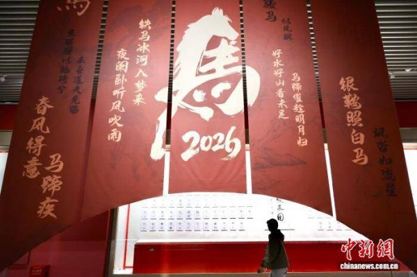 2月24日,浙江杭州,巨大的马元素装饰出现在展馆中。近日,浙江博物馆推出“百骏迎祥——丙午新春马文化特展”,不少游人前来参观打卡。中新社记者 肖健 摄