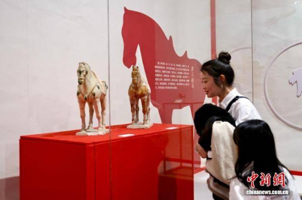 2月24日,浙江杭州,游人观赏唐三彩马。近日,浙江博物馆推出“百骏迎祥——丙午新春马文化特展”,不少游人前来参观打卡。中新社记者 肖健 摄