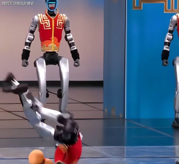 就是一个机器人在打醉拳的时候,一个没站稳就倒在舞台上,一开始我还以为是舞台事故,哪晓得人家一个鲤鱼打挺就起来了。