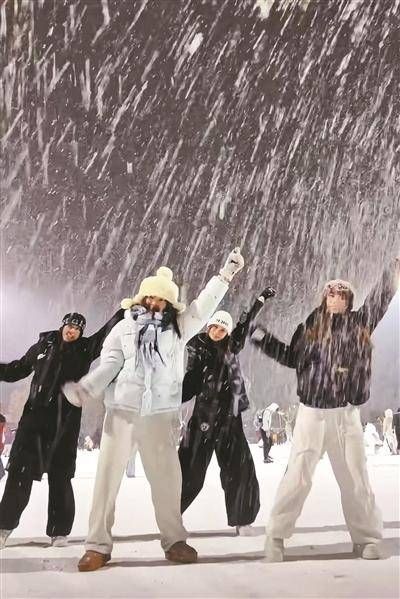 今年,在网络上走红的初雪舞视频里,大多以真实降雪为背景:几位好友并肩站在镜头前,伴着轻快旋律同步完成手势与肢体动作。拍摄场景遍布各地,既有大学校园,也有街头路边。而在未迎来降雪的南方地区,不少拍摄者会选择空旷场地,借助喷雪剂模拟雪景拍摄视频。