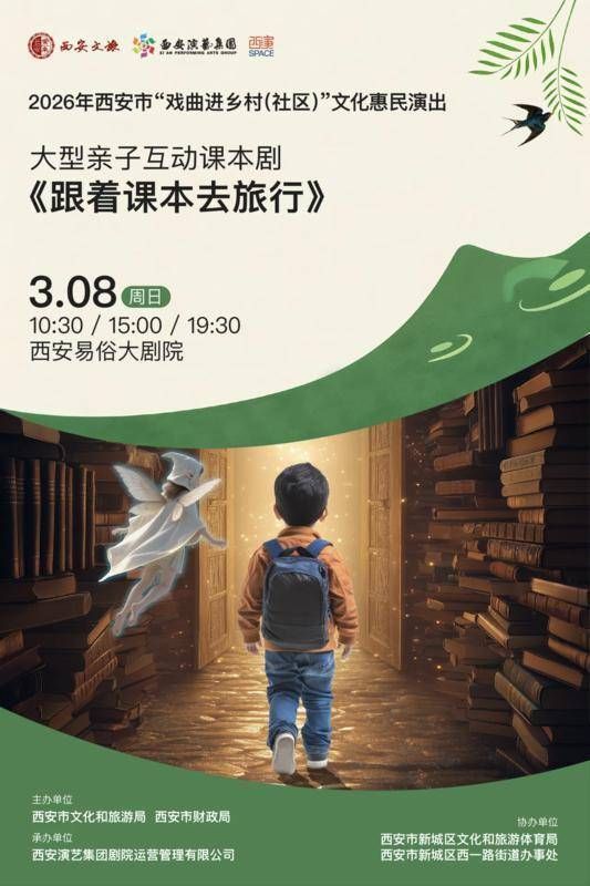 率先与观众见面的,是大型亲子互动课本剧《跟着课本去旅行》。演出将于3月8日10:30、15:00、19:30在西安易俗大剧院连演三场。