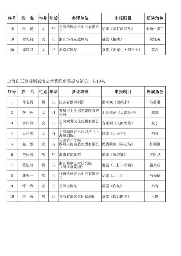 第31届上海白玉兰戏剧表演艺术奖揭晓 五位新人奖陕西占据两位
