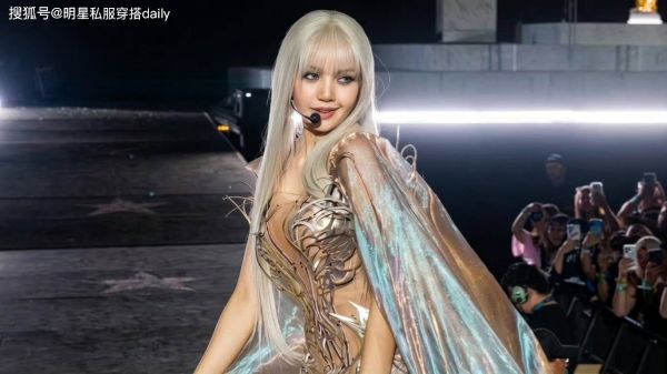 Lisa科切拉舞台犹如天使降临!作为国际知名歌手,她身着一袭银色战袍亮相,银灰色金属织物披风随风舞动,搭配灰白发色与机甲元素,科技感十足!在舞台上的Lisa一向是大胆前卫的!
