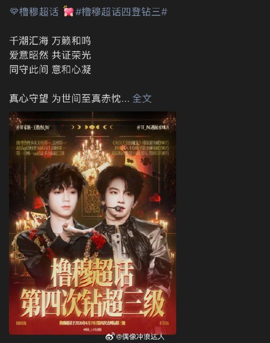 #橹穆超话四登钻三# 橹穆已经霸榜CP超话榜国一122天,今天超话四登钻三,这就是内娱顶流美帝的实力
