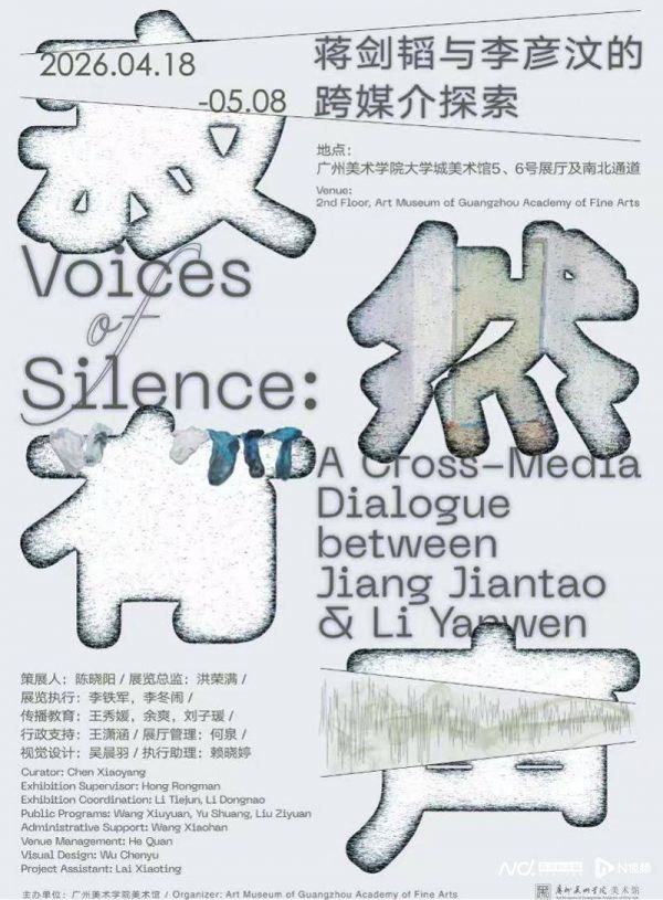 即日起至5月18日,“寂然有声——蒋剑韬与李彦汶的跨媒介探索展”在广州美术学院美术馆举行。两位艺术家均任教于广州美术学院,一直在视觉与听觉之间展开跨媒介实践,本次展览正是他们创作“持续发生”的呈现。