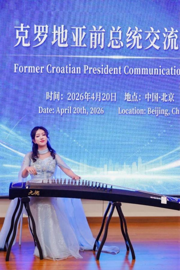 4月20日,克罗地亚前总统伊沃·约西波维奇北京交流论坛在北京隆重举办,本次论坛以深化中外人文交流、推动国际友好合作为主旨,汇聚各界嘉宾,搭建起中国与克罗地亚文化互动、对话交流的优质平台。青年古筝演奏家钟翊君受邀出席本次活动,现场演奏经典曲目《青花瓷》,以千年古筝之韵,演绎东方美学意境,为在场中外嘉宾献上一场极具中华传统文化魅力的视听盛宴,助力中外文化友好交流。