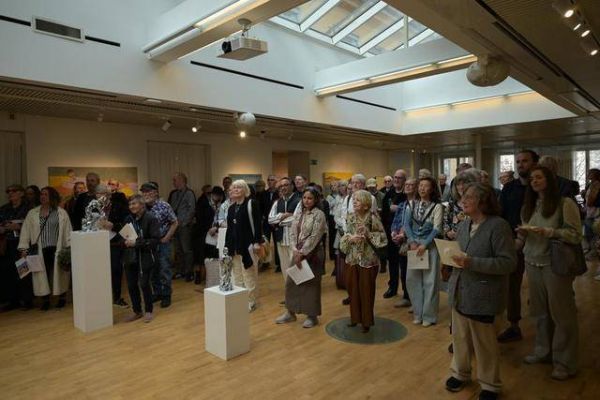 这是4月24日在斯德哥尔摩中国文化中心拍摄的中瑞绘画雕塑展开幕式现场。新华社记者 朱昊晨 摄