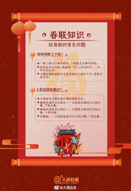【春联怎么贴?收好这份牛年春节贴春联指南~~】牛年要到了,你家贴春联了吗?什么时间最宜贴春联?一起涨知识,祝你新年“牛”气冲天!via@人民日报